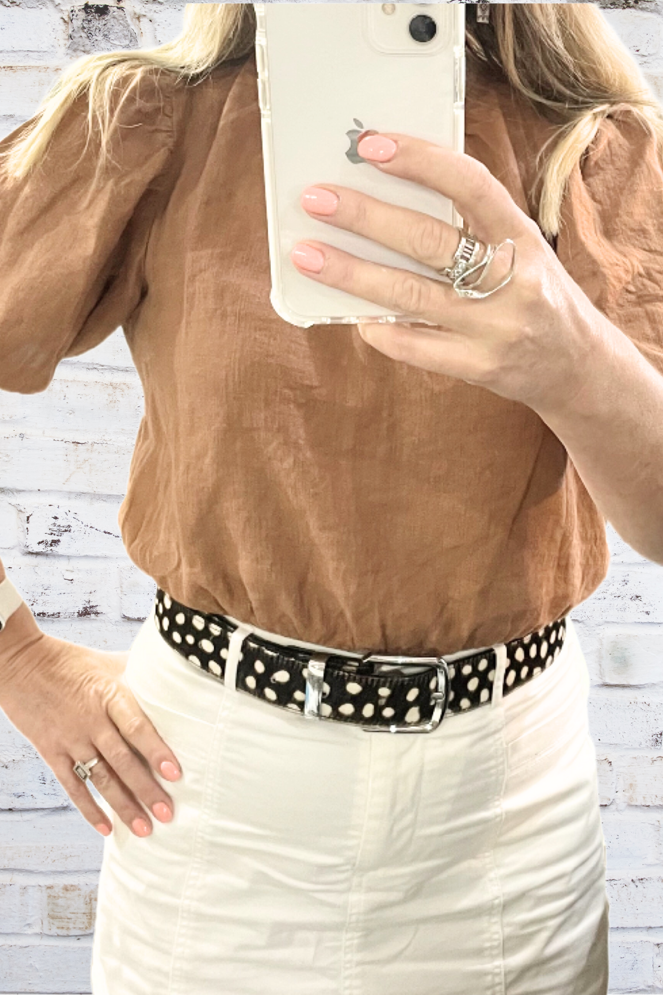 Accessorise with our animal print genuine leather and cowhide belts. Wear with jeans, slouchy top or your favourite skirt to give your outfit that fashionable edge.