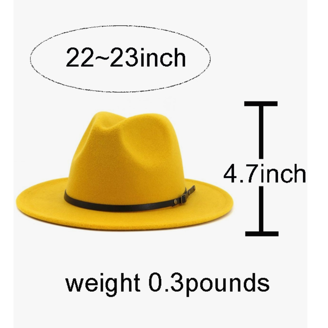Size: adjustable Hat Circumference: 23.5"(inch) Hat Height: 5.25"(inch) Brim Circumference: 38"(inch) Brim Diameter: 13.65"(inch)