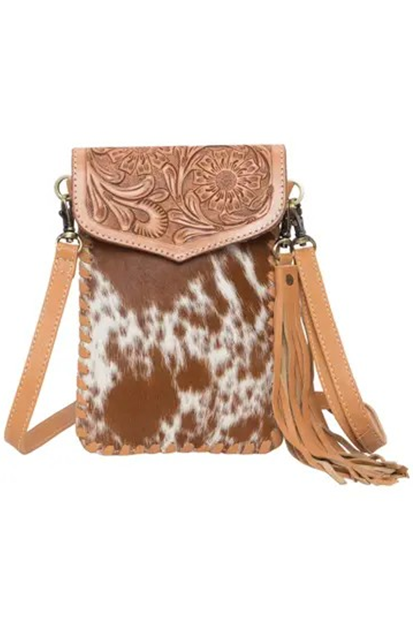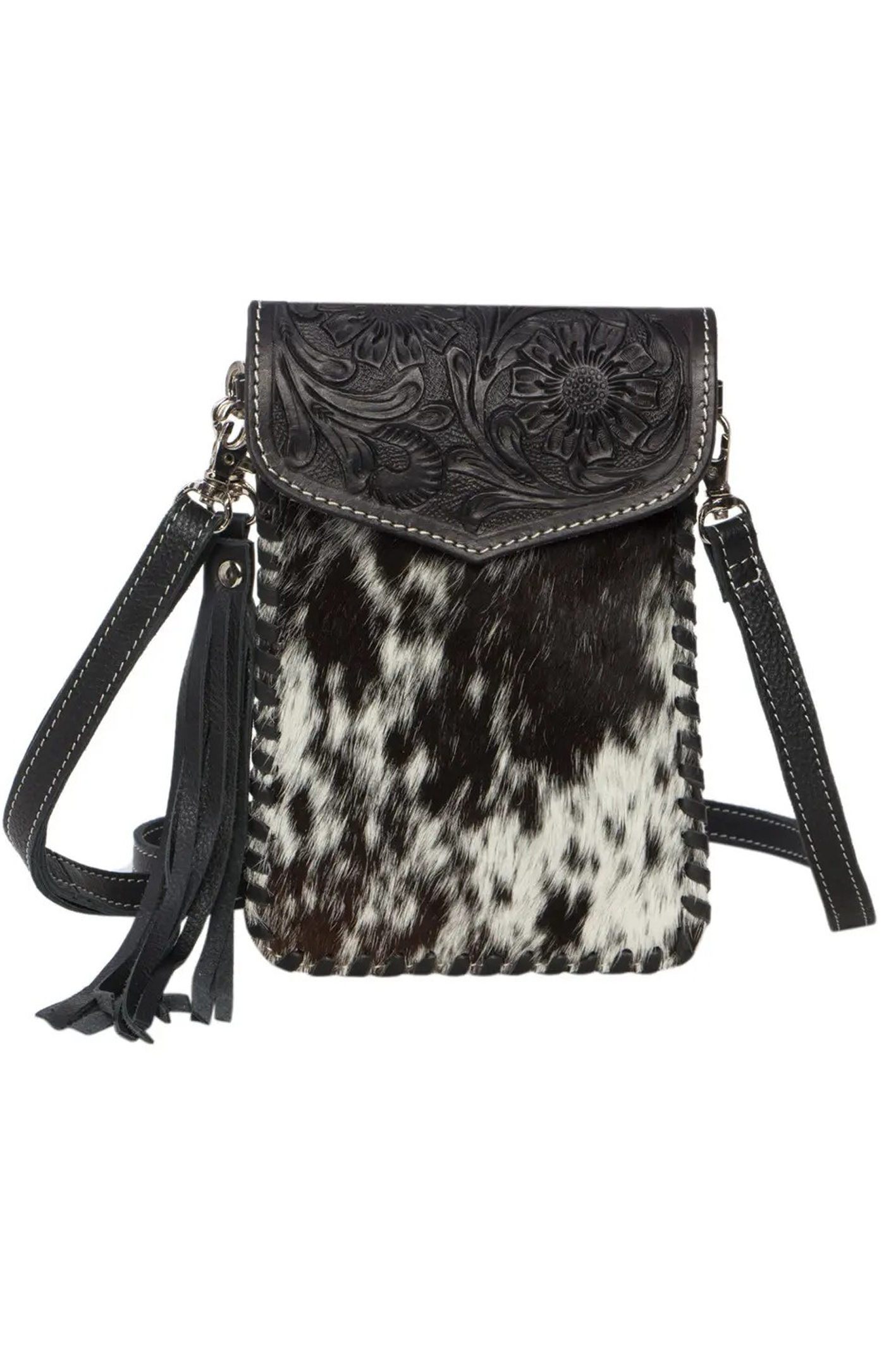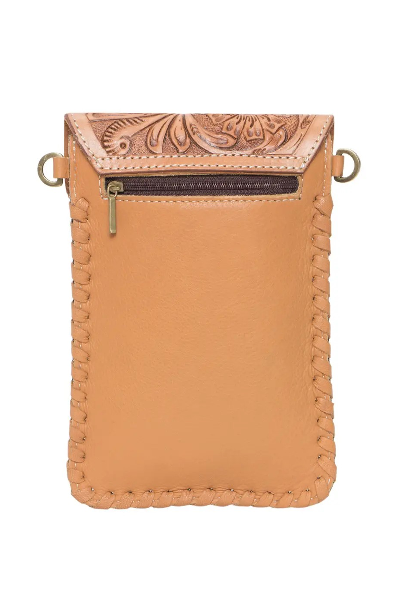 This bag has a vertical design with magnetic closure and interior card slots. This sleek style features enough room to fit any size mobile and a few essentials. This beauty is finished off with stunning hand tooled details and hand weaving on sides, includes detachable and adjustable genuine leather shoulder strap plus detachable leather tassel.