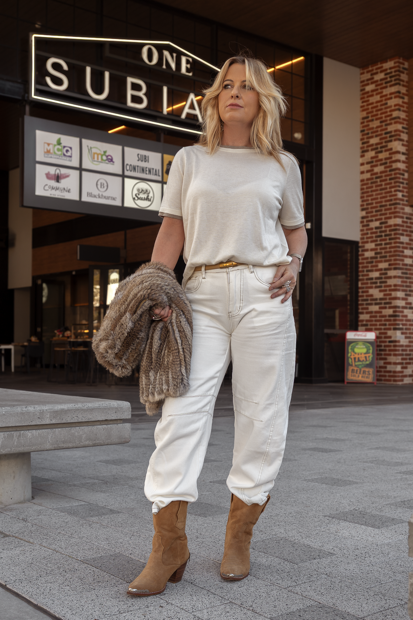 'Monroe' Mongolian Cashmere and Silk Top - Ivory/Camel