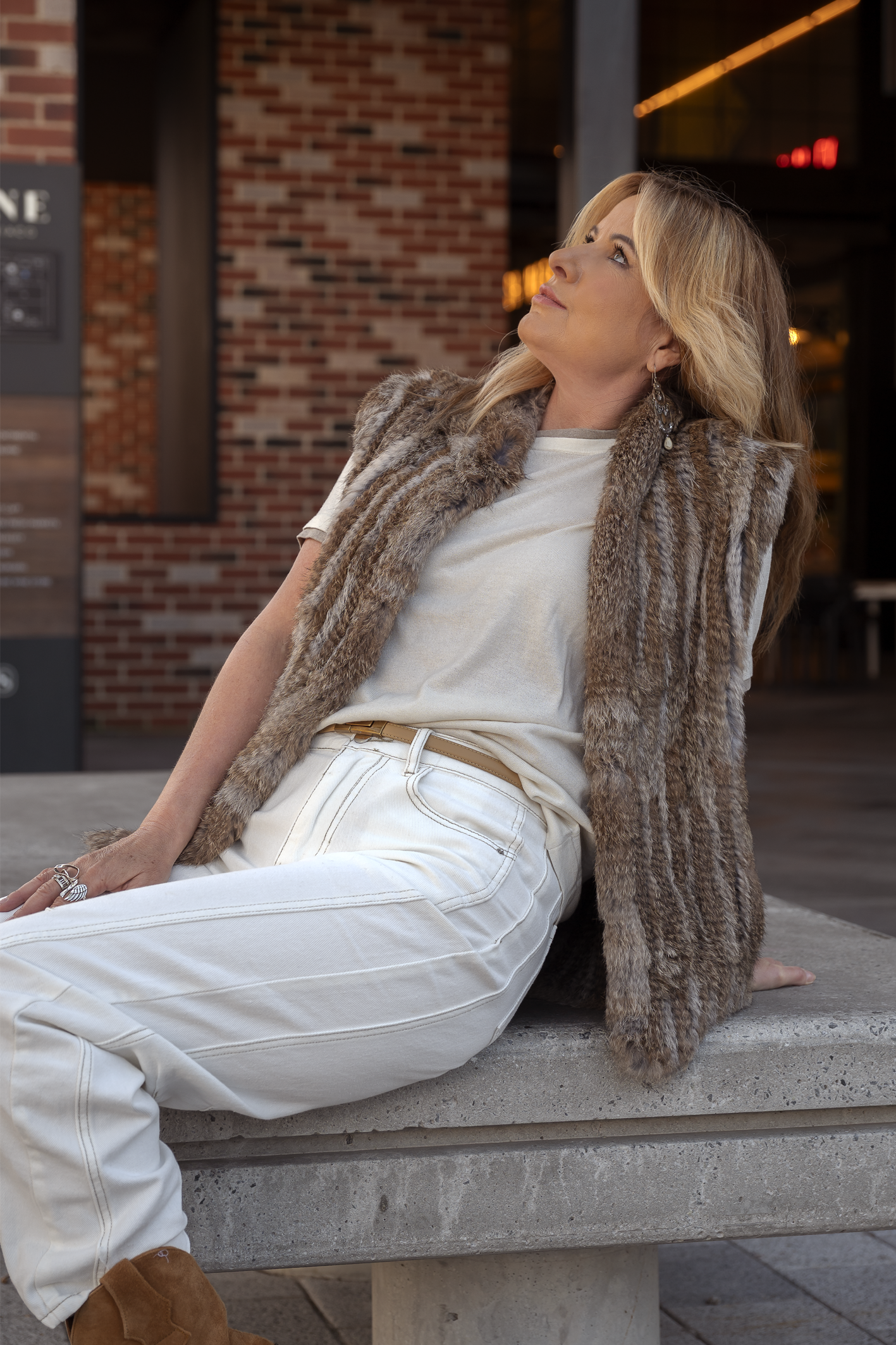 With a two-tone design in ivory and camel, this luxurious top looks just as good worn casually with jeans or dress up with a fur vest for effortless style.