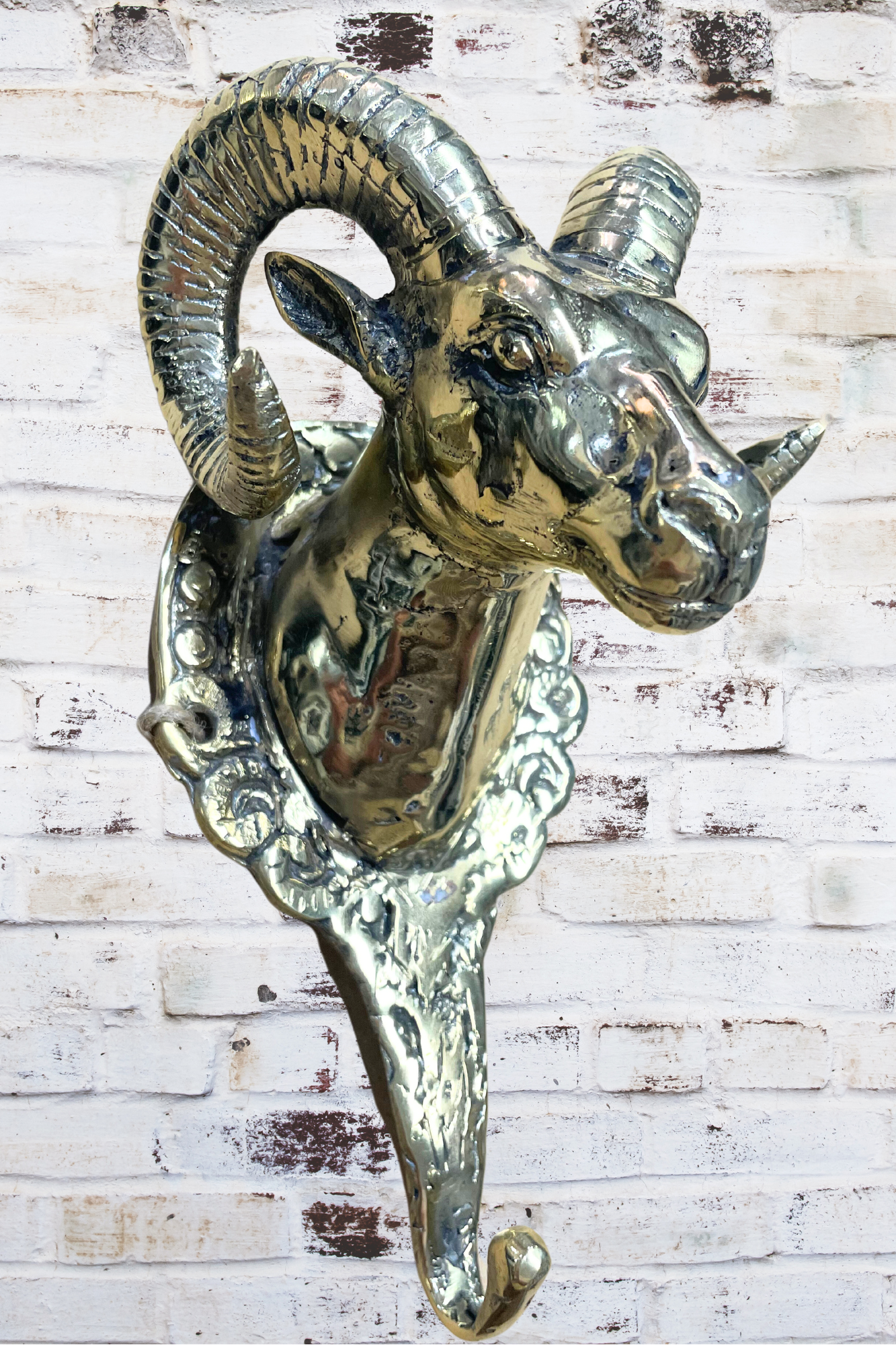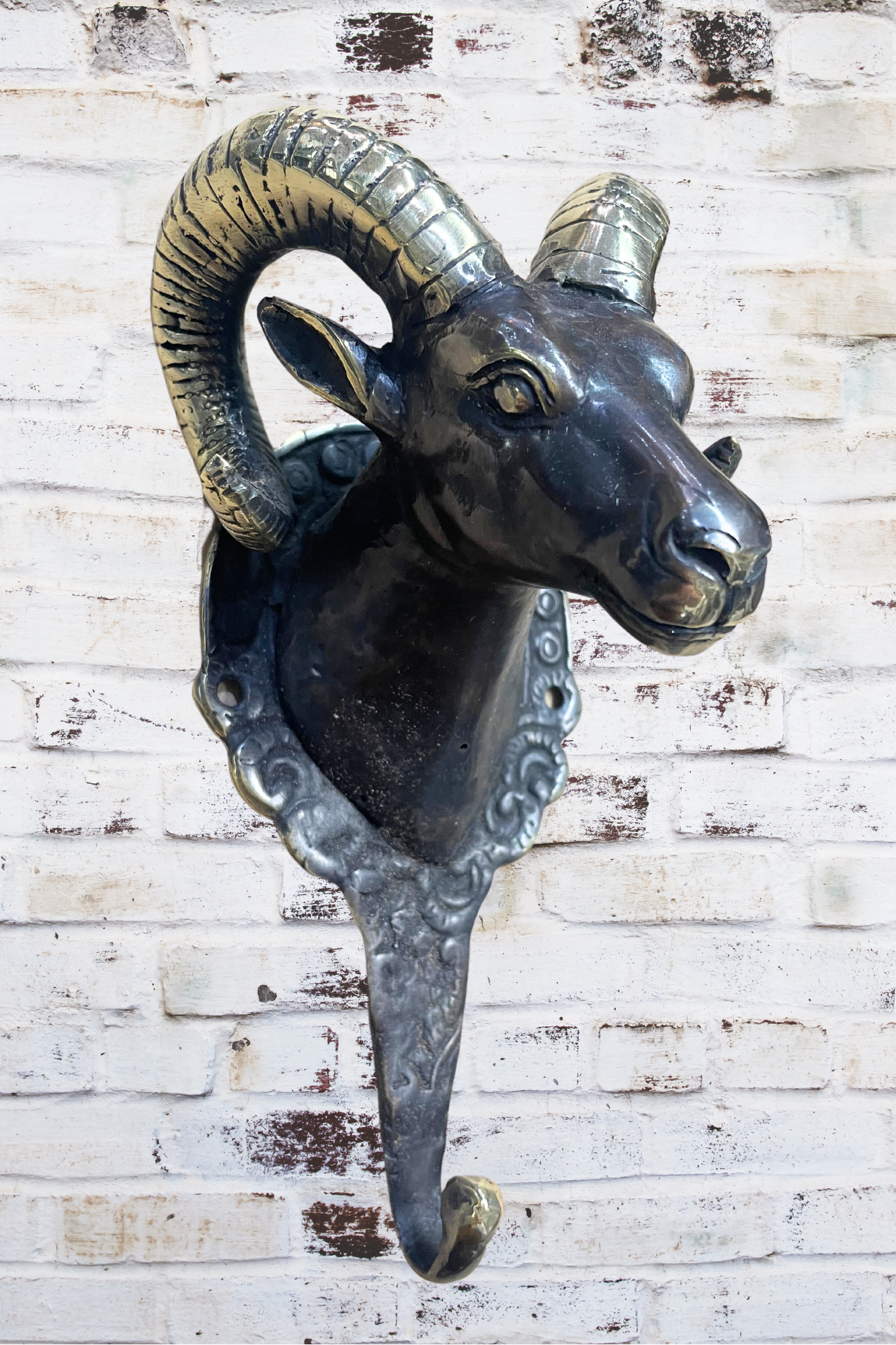 'Capricorn Mountain Goat' Antique Brass Wall Hooks are available in two finishes: