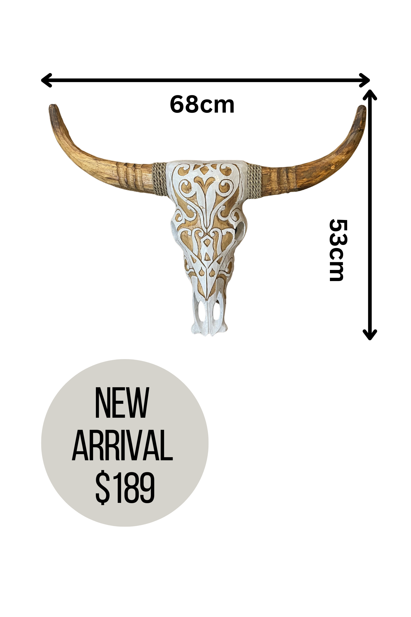 Add a little modern boho style to your interior with our NEW wood Buffalo skulls.