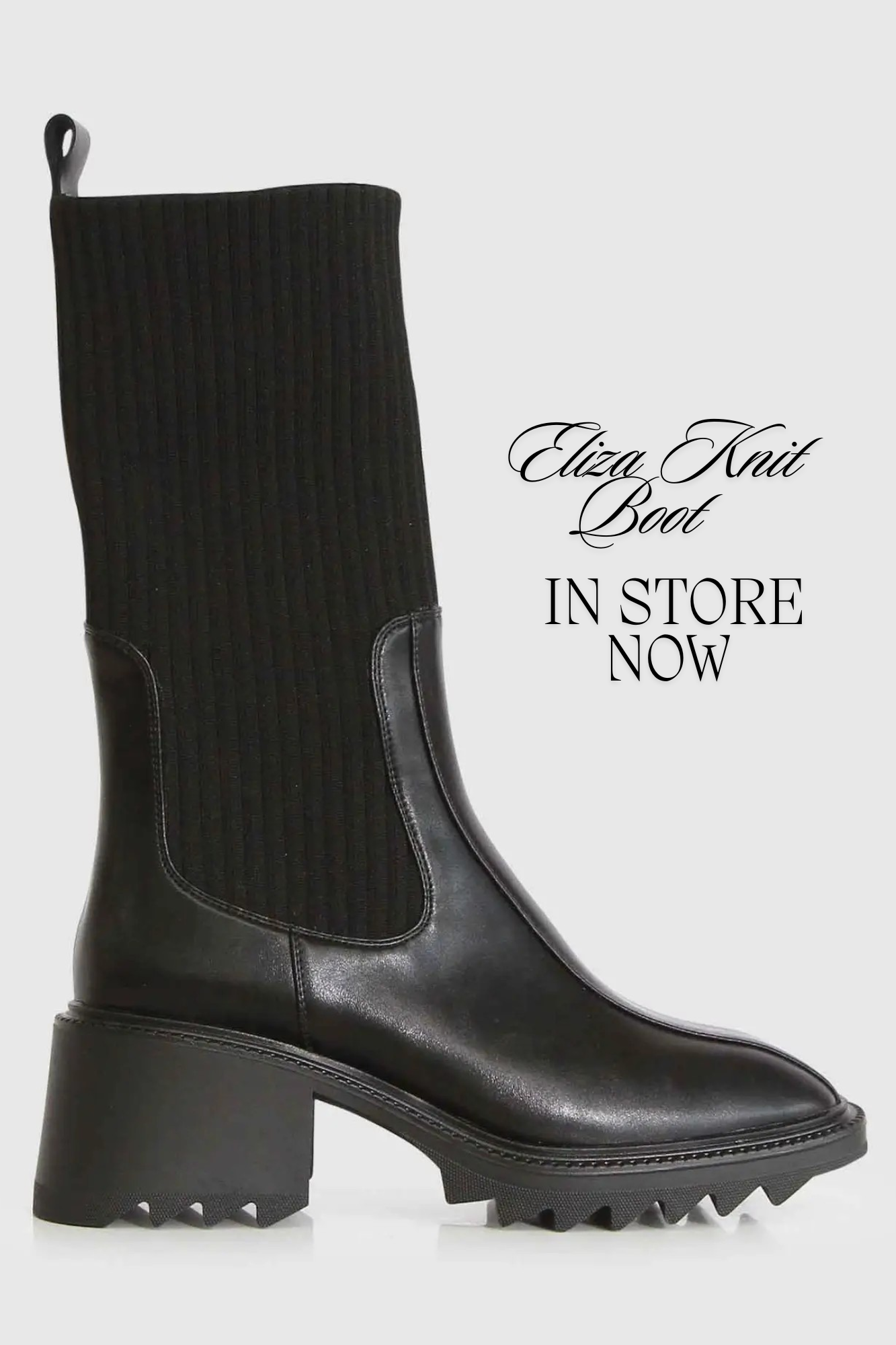 The 'Eliza' Knit Boot is a cosy update of the classic Chelsea boot with an extra chunky rib sock-like panel that can be worn up or folded down to ensure you can stay comfy no matter what outfit you're wearing.